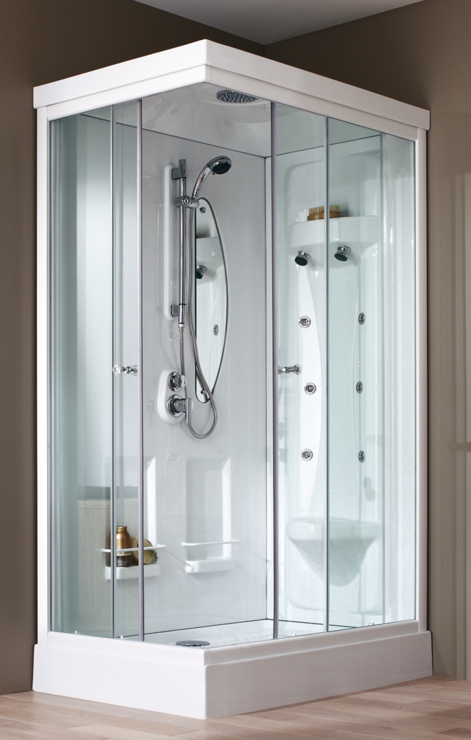 Cabine de douche chocolat profilés en aluminium chromé H ...