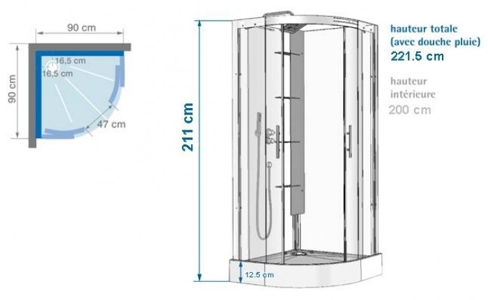 Cabine de douche hydromassante skadi 1/4 cercle 100 cm ...